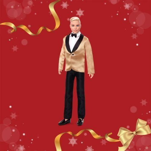 ホリデー バービー人形のきらびやかなガウンの金色の色調を引き立てるように